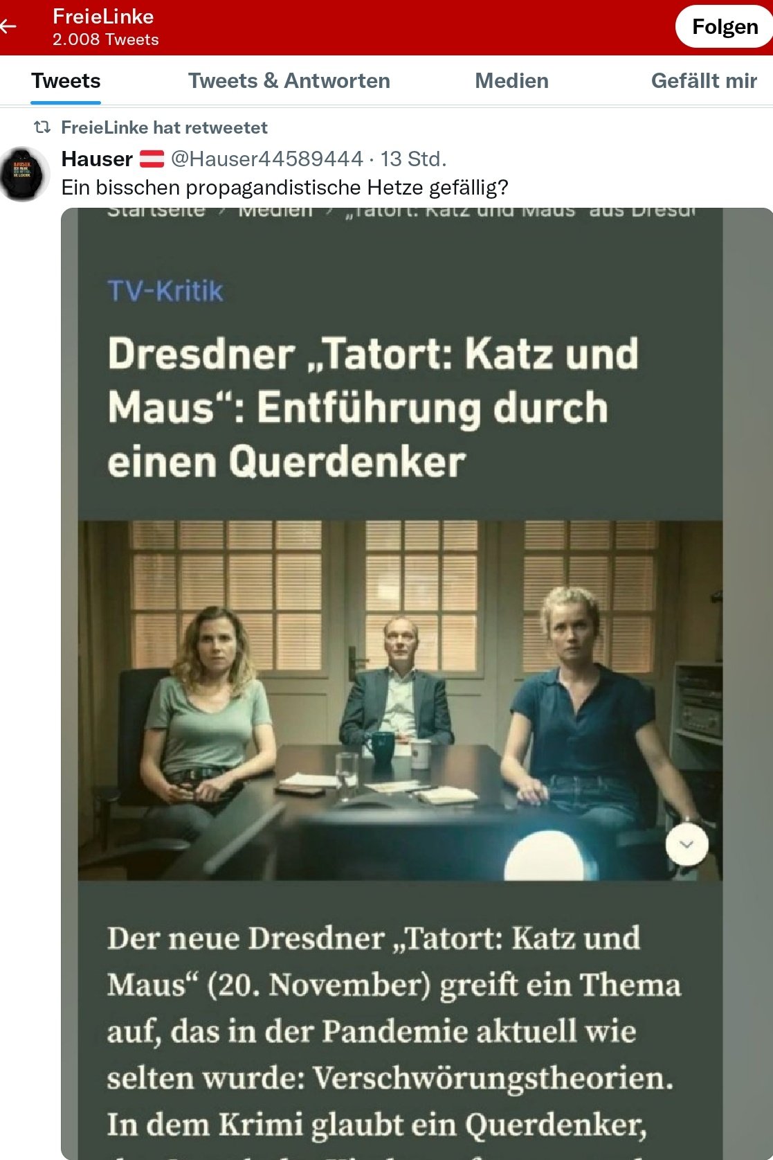 Entführung durch einen Querdenker. Katz und Maus 20. November greift ein Thema auf das in.